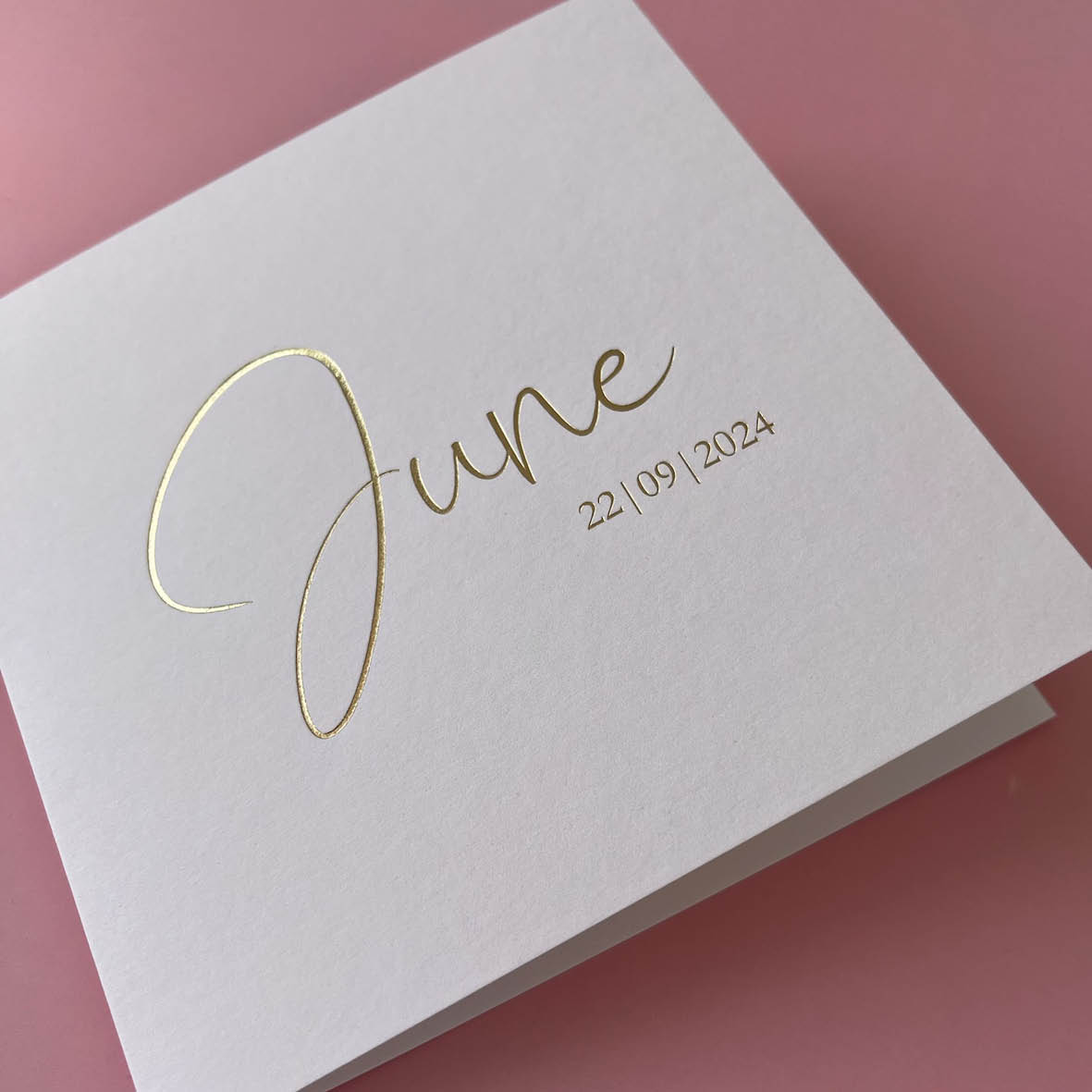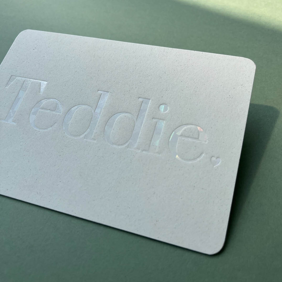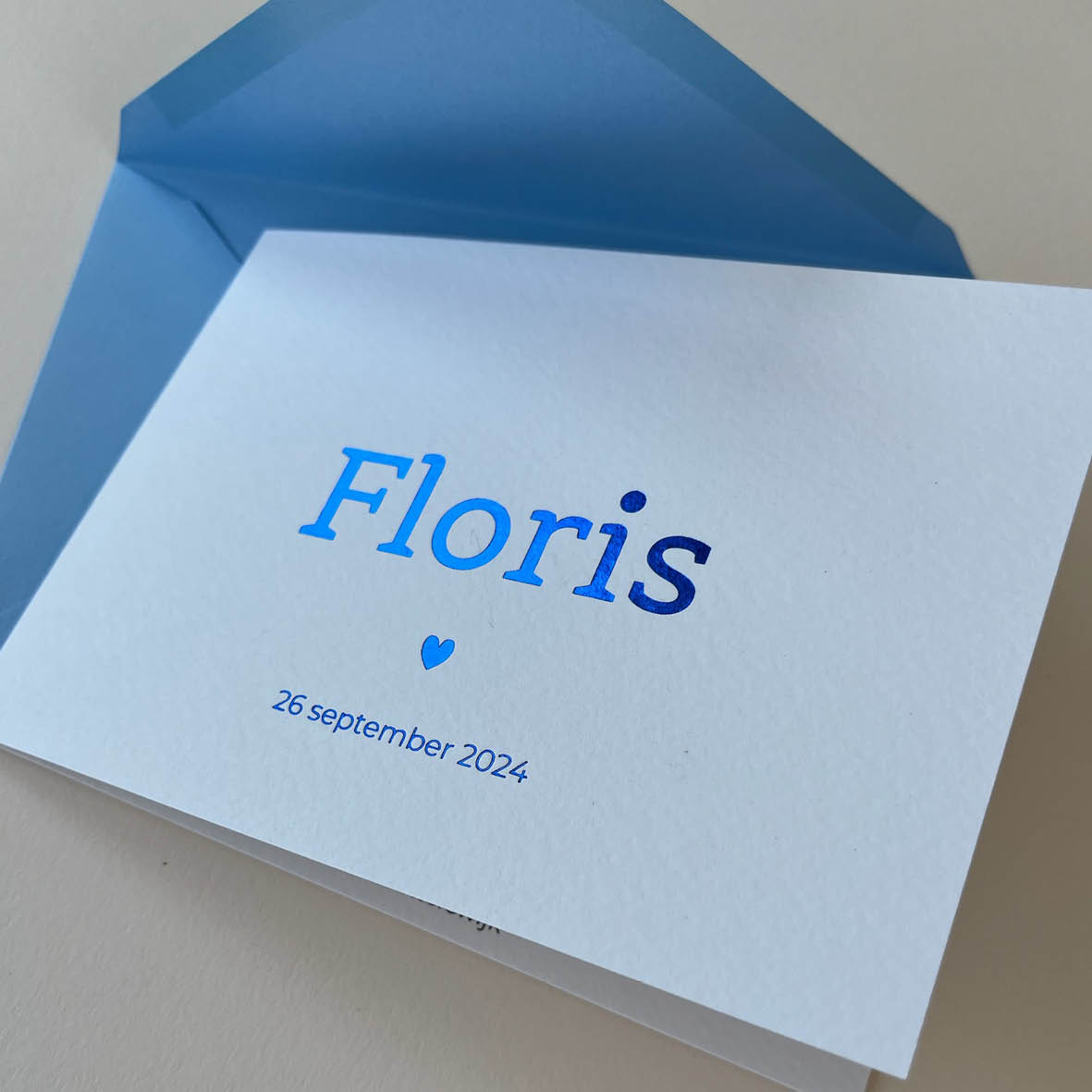 Foliedruk geeft een geboortekaartje een luxe en verfijnde uitstraling. Van subtiele accenten tot een opvallende naam in goud, zilver of roségoud (maar liefst 24 kleuren beschikbaar!). Met foliedruk maak je van elk geboortekaartje een bijzonder en tijdloos ontwerp. Laat je inspireren door wat we al gemaakt hebben en ontdek hoe foliedruk jouw geboortekaartje net dat beetje extra geeft.