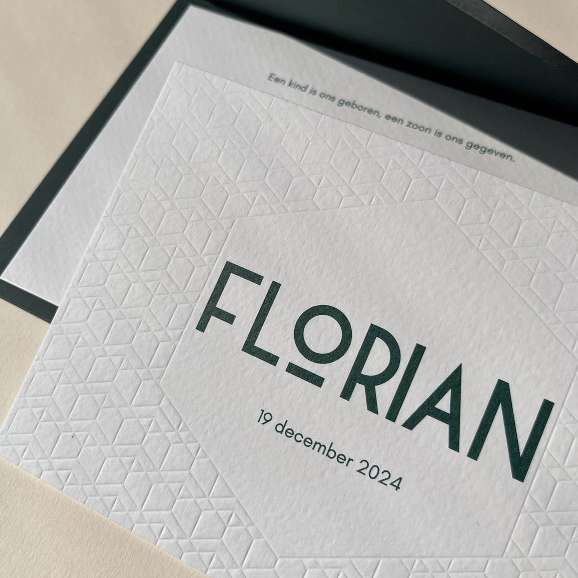 Op zoek naar ideeën voor geboortekaartjes met reliëf verdiept, ook wel blinddruk genoemd? Deze druktechniek geeft een subtiel en stijlvol effect waarbij (delen van) het ontwerp verdiept in het papier wordt gedrukt, zonder inkt of kleur. Perfect voor rustige en tijdloze geboortekaartjes.