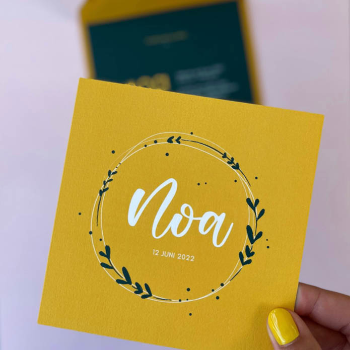 Prachtige geboortekaartje, dat als een klein kunstwerkje een glimp van je geluk laat zien. Een betoverende illustratie siert de voorkant van het geboortekaartje en vertelt jullie verhaal van een nieuw avontuur als ouders.