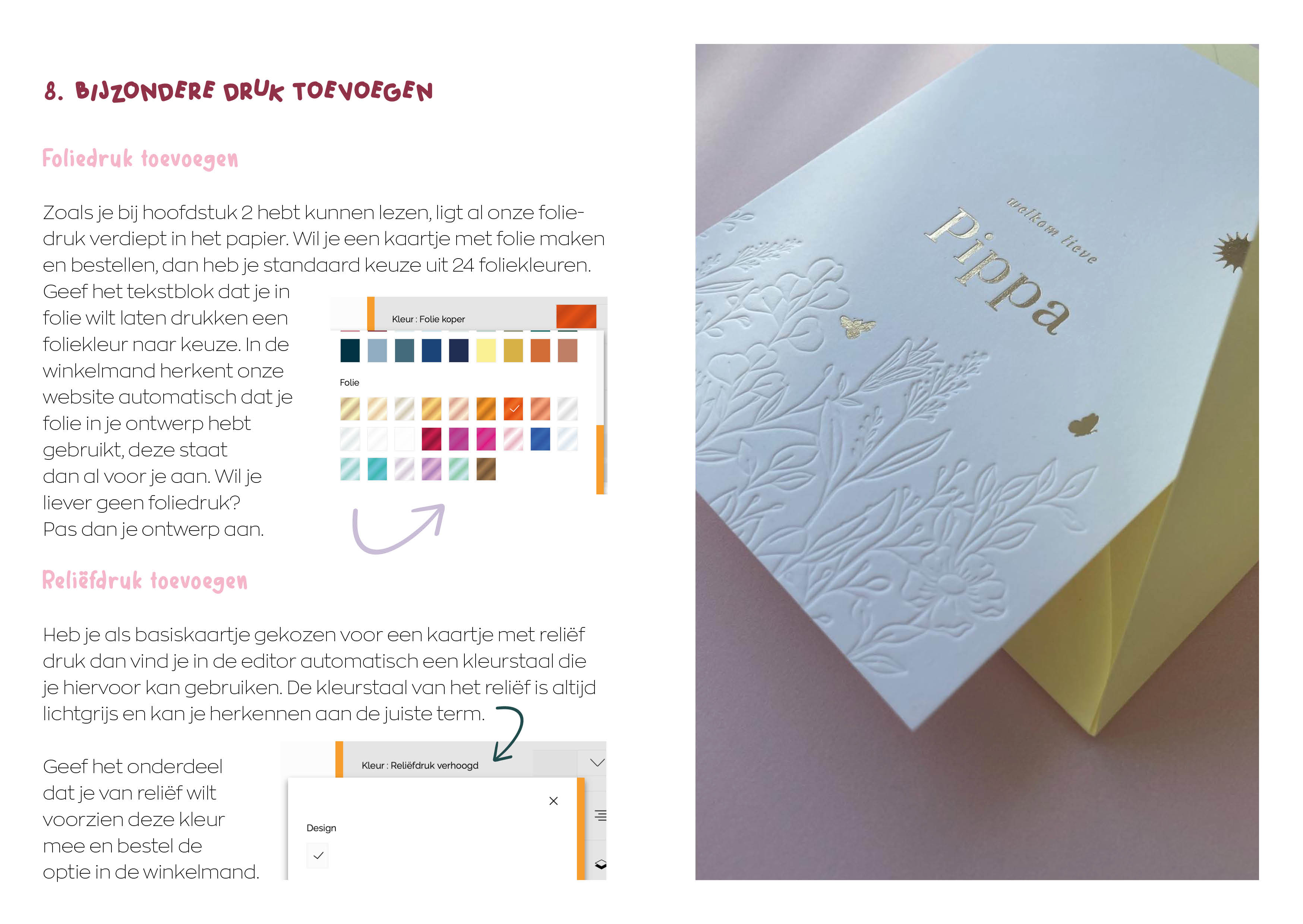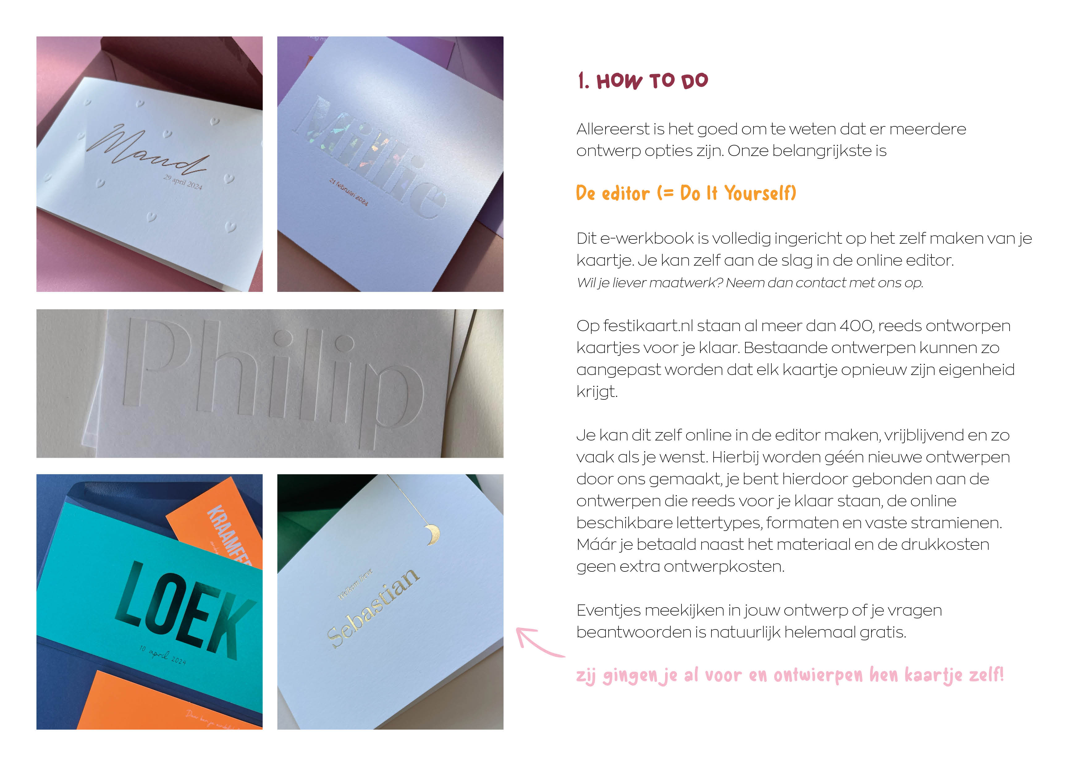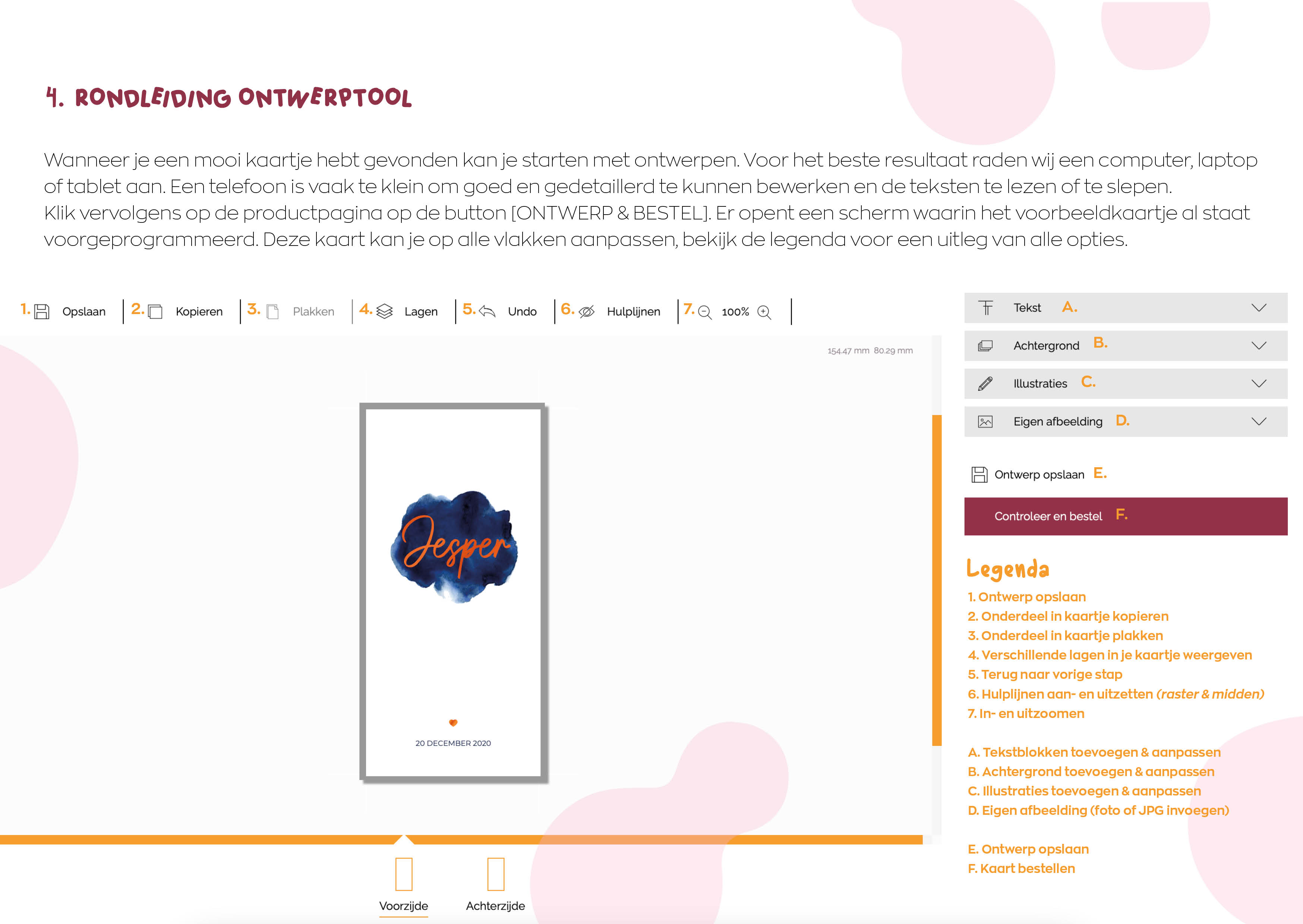 Wat leuk dat je op het punt staat om jullie geboortekaartje te gaan ontwerpen. Om je opweg te helpen hebben we speciaal voor jou een e-book gemaakt. Hierbij geven we je graag een korte rondleiding door onze online ontwerptool. Stapsgewijs nemen we je mee in onze werkwijze en geven we je tips. Om te beginnen raden wij je ten zeerste aan om je kaartjes te ontwerpen op een laptop, computer of tablet. Dat werkt nét even prettiger dan op een (kleine) telefoon.