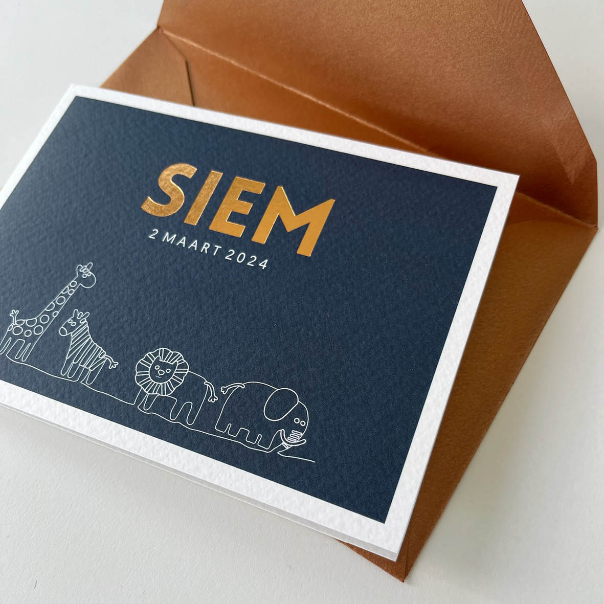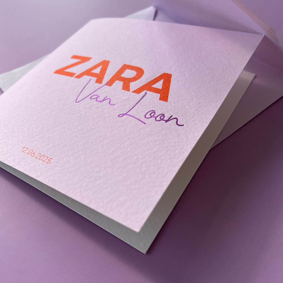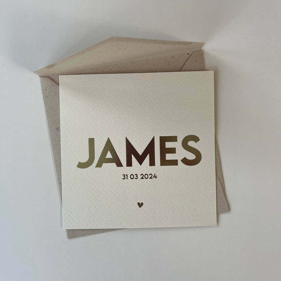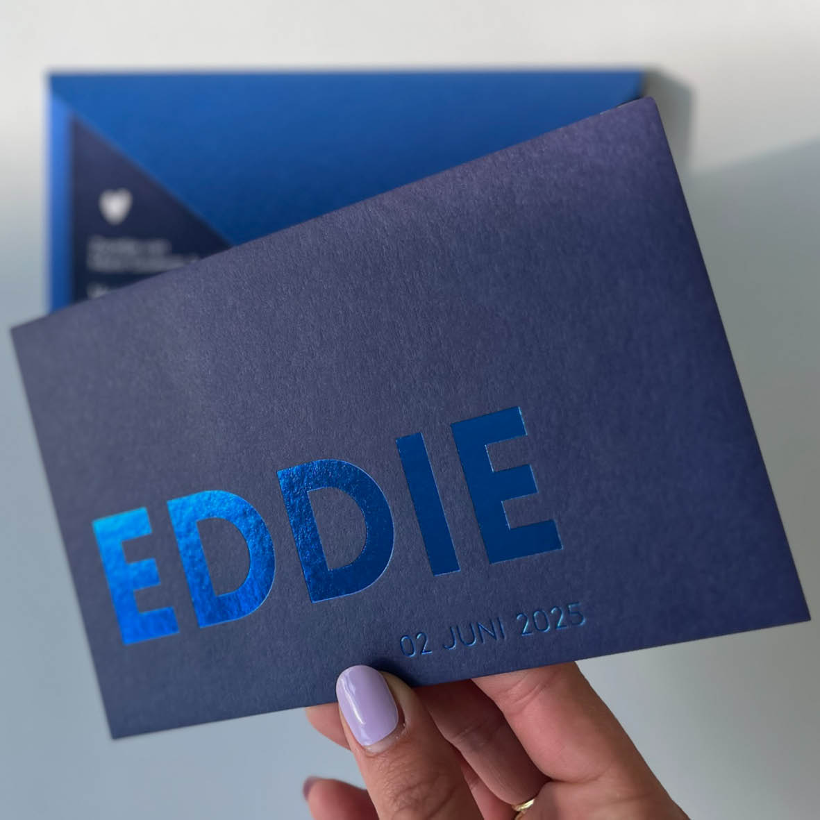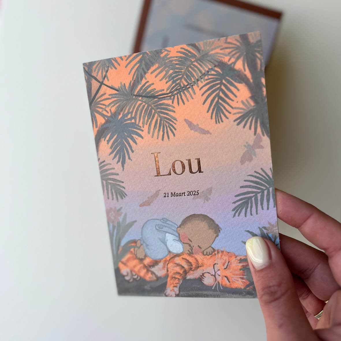 Foliedruk geeft een geboortekaartje een luxe en verfijnde uitstraling. Van subtiele accenten tot een opvallende naam in goud, zilver of roségoud (maar liefst 24 kleuren beschikbaar!). Met foliedruk maak je van elk geboortekaartje een bijzonder en tijdloos ontwerp. Laat je inspireren door wat we al gemaakt hebben en ontdek hoe foliedruk jouw geboortekaartje net dat beetje extra geeft.
