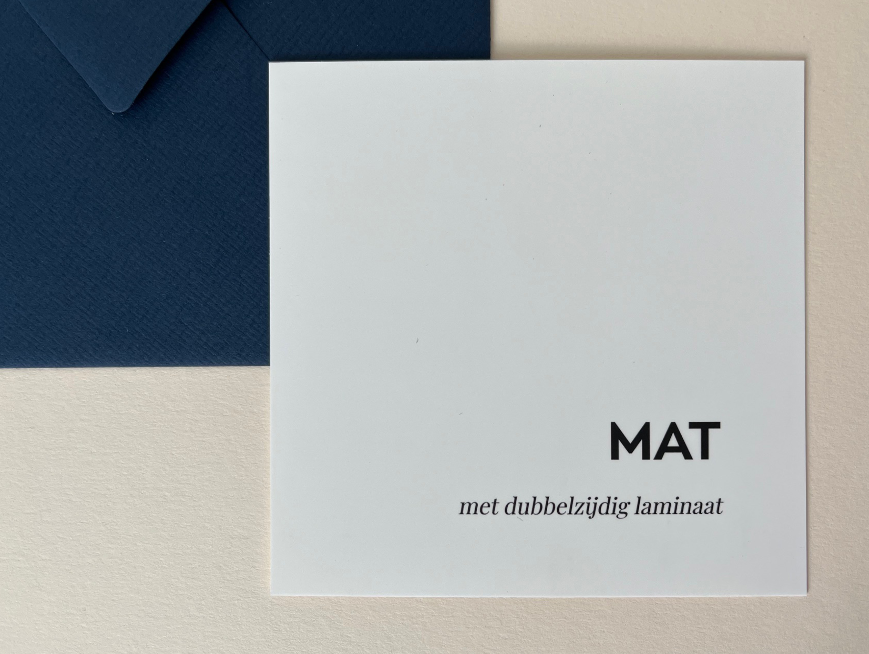 Een papiersoort is erg bepalend voor het uiteindelijke resultaat van jouw kaartjes. Je eigen keuze voor papier kunnen het uiteindelijke resultaat beïnvloeden, kleuren en scherpte kunnen per papier verschillend uitpakken. We adviseren daarom altijd gepersonaliseerde proefdruk te bestellen om zeker te zijn van je keuze.
