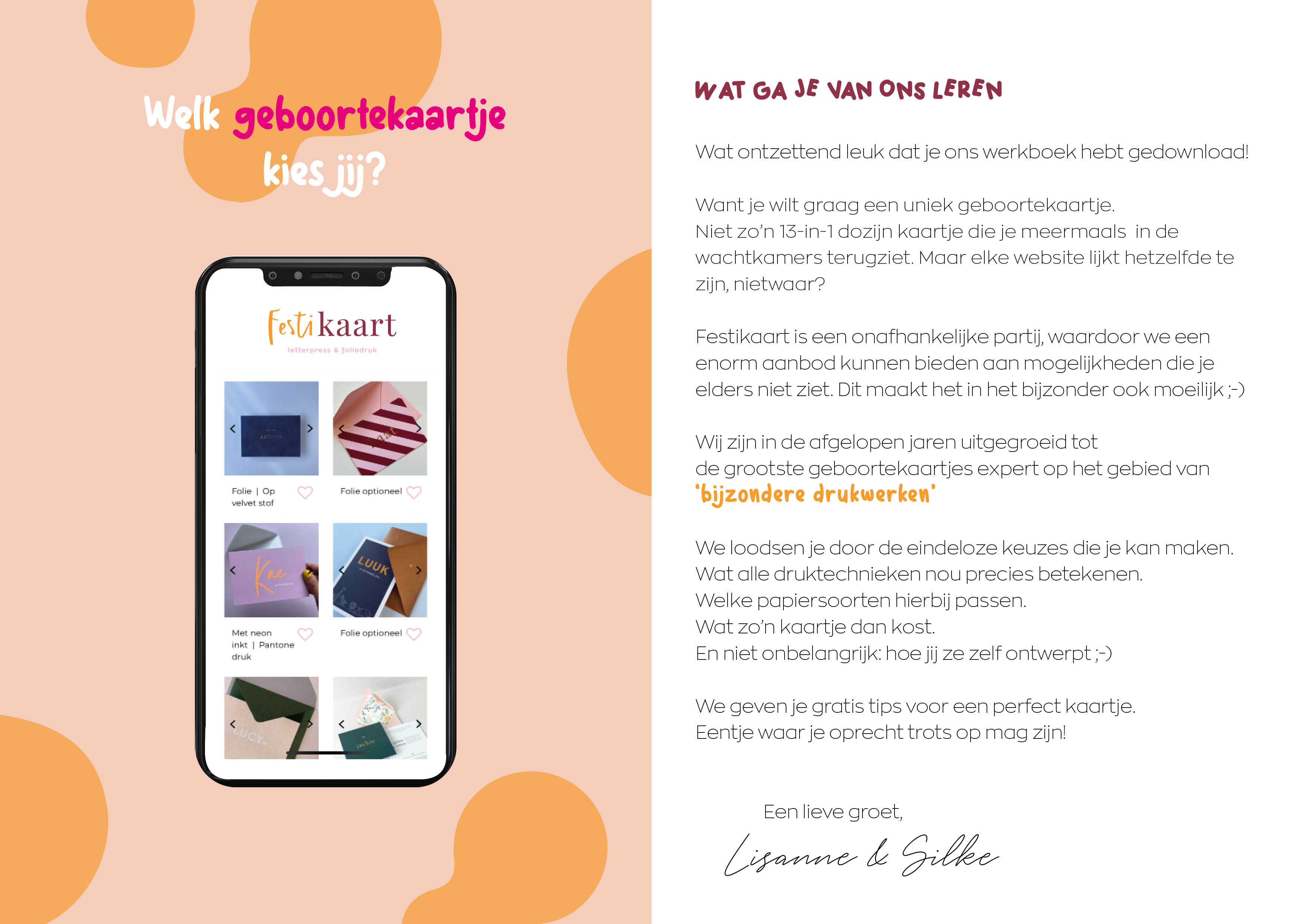 Wat leuk dat je op het punt staat om jullie geboortekaartje te gaan ontwerpen. Om je opweg te helpen hebben we speciaal voor jou een e-book gemaakt. Hierbij geven we je graag een korte rondleiding door onze online ontwerptool. Stapsgewijs nemen we je mee in onze werkwijze en geven we je tips. Om te beginnen raden wij je ten zeerste aan om je kaartjes te ontwerpen op een laptop, computer of tablet. Dat werkt nét even prettiger dan op een (kleine) telefoon.